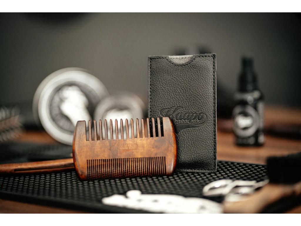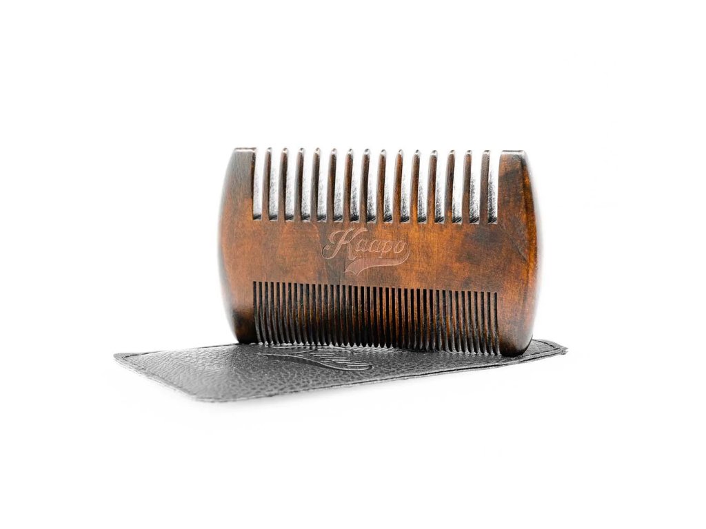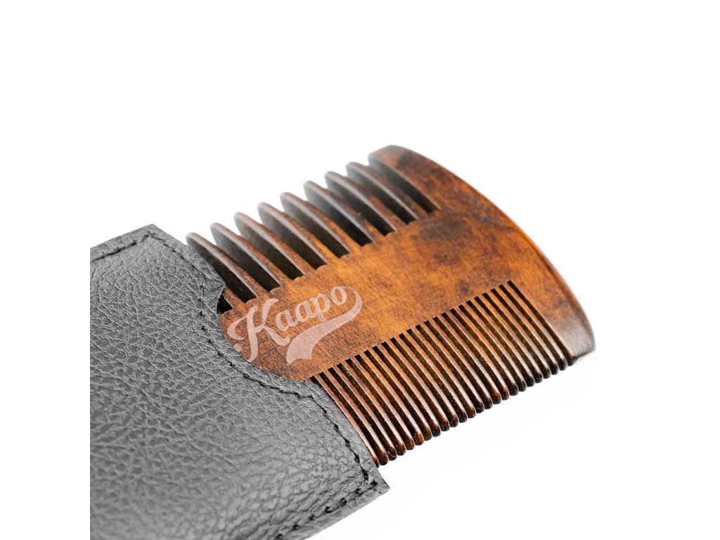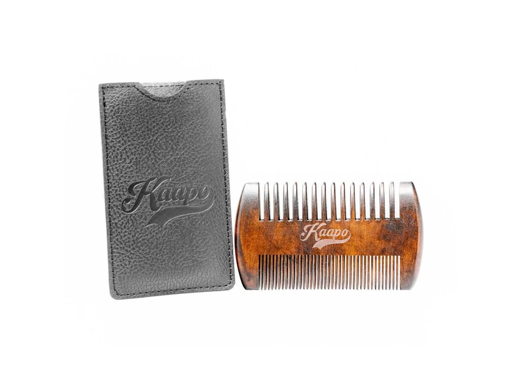 Beard comb - Hřeben na vousy Kaapo Náš prémiový hřeben na vousy není jen běžným nástrojem péče o vousy - je to záruka, že každá vaše úprava bude prováděna s maximální péčí a stylem. Ručně vyroben Ručně vyrobený z kvalitního sheeshamového dřeva, tento hřeben na vousy představuje spojení tradičního řemesla a moderní elegance. Sheeshamové dřevo Sheeshamové dřevo je známé svou výjimečnou odolností vůči rozkladu, což zaručuje, že váš hřeben zůstane pevný a spolehlivý i po mnoha letech používání. Jeho odolnost vůči štěpení a ohybu znamená, že se můžete spolehnout na jeho dlouhou životnost a konzistentní výkon. S hladkým povrchem, který má sheeshamové dřevo přirozeně, a krásným leskem po vyleštění, bude tento hřeben nejen funkčním, ale také esteticky příjemným doplňkem vaší péče o vousy. Jeho luxusní vzhled a kvalitní zpracování dodávají vaší každodenní péči o vousy ten správný nádech elegance. Obal pro lepší kondici hřebenu! Obal hřebenu na vousy, který je součástí balení, není jen průměrným doplňkem. Je to ochranný štít, který chrání váš hřeben na vousy před poškrábáním, prachem a jinými nepříznivými vlivy okolního prostředí. Jeho kvalitní materiál a precizní zpracování poskytují maximální ochranu, aby váš hřeben na vousy zůstal v nejlepší kondici po dlouhou dobu. Díky tomuto pevnému a kvalitnímu obalu si můžete být jisti, že váš hřeben na vousy bude chráněný i v náročných podmínkách. Ať už jste doma, na cestách nebo v terénu, váš hřeben na vousy bude vždy připravený dodat vašim vlasům dokonalý vzhled, protože jeho nejlepší kondice je zajištěna díky spolehlivé ochraně poskytované tímto kvalitním obalem. Jak na ideální úpravu vousů s hřebenem na vousy Kaapo? Velké zuby tohoto hřebene na vousy jsou navrženy tak, aby snadno a efektivně rozčesaly vaše vousy od kořínků a odstranily případné zamotané či zacuchané partie. Díky nim můžete dosáhnout rovnoměrného a plynulého rozčesávání, které připraví vaše vousy na další kroky stylingu. Na druhou stranu, malé zuby hřebene na vousy jsou ideální pro detailní úpravu a tvarování vašich vousů podle vašich představ. S jejich pomocí můžete dosáhnout precizních a přesných výsledků, ať už preferujete klasický look nebo moderní design. Přesná vzdálenost mezi zuby a jejich optimální přilnavost k vašim vousům umožňuje snadnou manipulaci s hřebenem na vousy a vytváření požadovaného účesu bez námahy. Tato vlastnost je zvláště užitečná při detailním stylingu, kdy každý tah hřebenem má význam pro konečný vzhled. Díky těmto vlastnostem je tento hřeben na vousy ideální pro všechny typy vousů, bez ohledu na jejich délku, hustotu nebo texturu. Jeho univerzální design a funkce ho činí nepostradatelným nástrojem pro každého, kdo dbá na precizní a profesionální péči o své vousy. Hřeben na vousy, ideální přítel na cesty a dovolené! Hřeben na vousy, ideální přítel na cesty a dovolené! Jeho kompaktní rozměry a skladnost ho činí skvělým společníkem pro všechny vaše dobrodružství. S tímto hřebenem na vousy, který se pohodlně vejde do kapsy nebo do tašky, máte vždy po ruce věrného pomocníka pro úpravu svých vousů, kdykoli a kdekoli. Buď taky Kaapo!