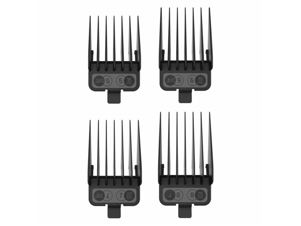 Set přídavných hřebenů pro strojky JRL FreshFade 2020C a kompatibilní je také s většinou střihacích strojků na trhu. Sada obsahuje 4 největší nástavce ve velikosti od 16 mm do 25 mm.