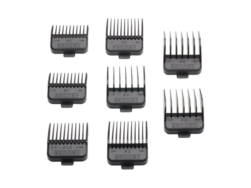 Souprava magnetických přídavných hřebenů na střihací strojky GAMMA+. Balení obsahuje 8 ks kvalitních plastových hřebenových nástavců s výškou střihu 1,5; 3; 4,5; 6; 10; 13; 16 a 19 mm.